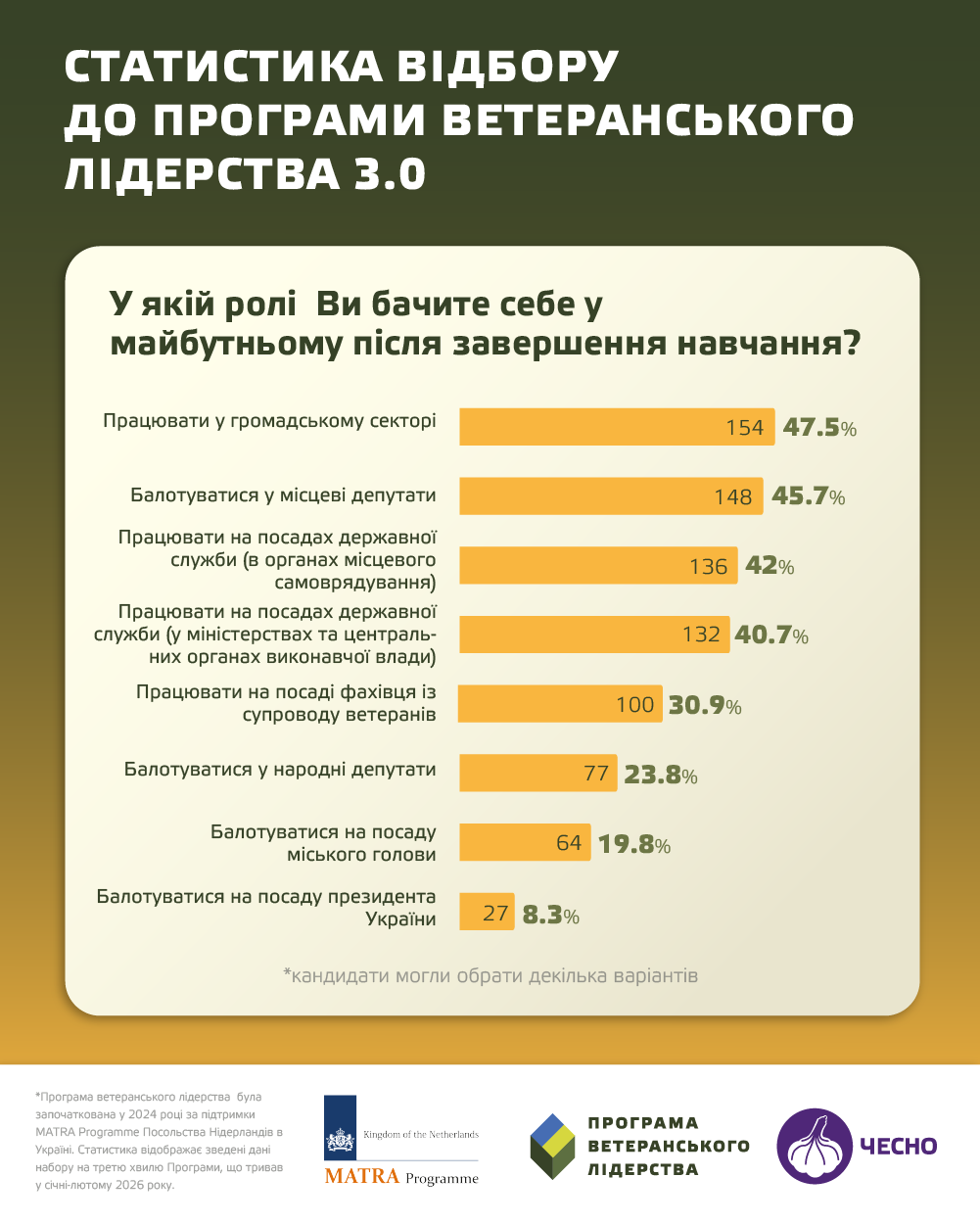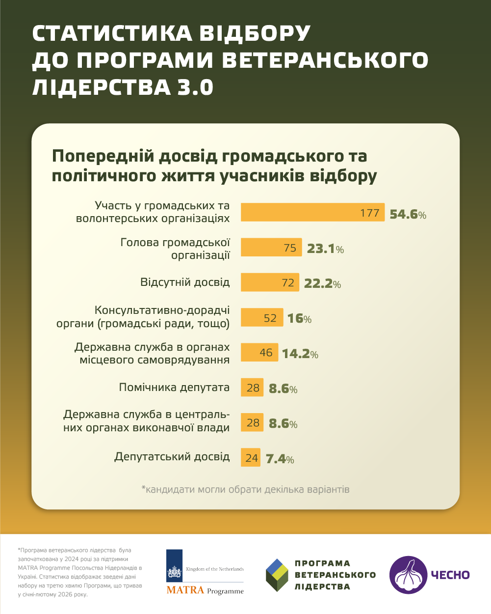 Програма ветеранського лідерства Руху ЧЕСНО реалізується за підтримки MATRA Programme Посольства Нідерландів в Україні.